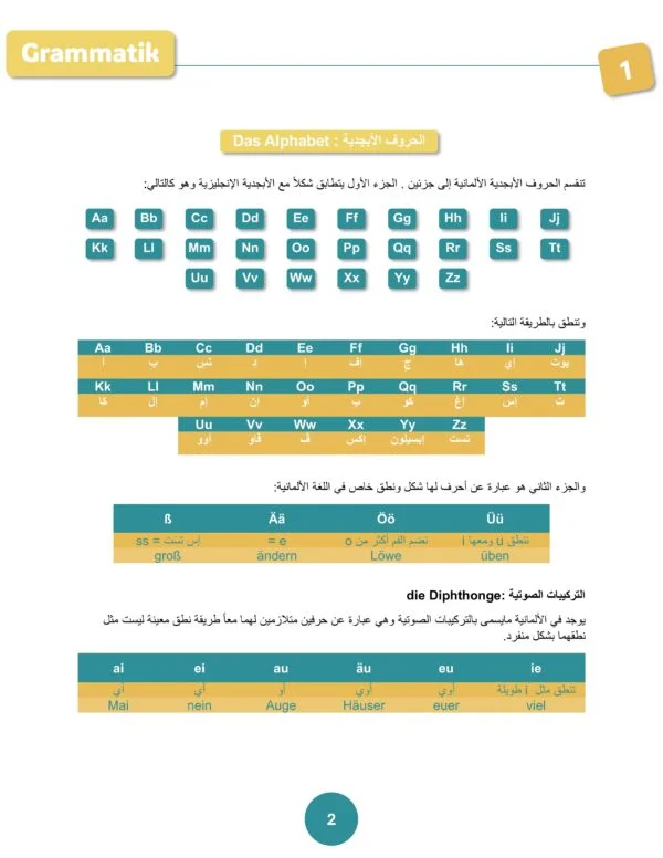 كتاب شامل 4 في 1 يجمع كل العناصر الأساسية التي يحتاجها المتعلم خلال رحلة تعلم الألمانية لتجنب التشتت وتوفير الوقت والجهد والتكلفة.
